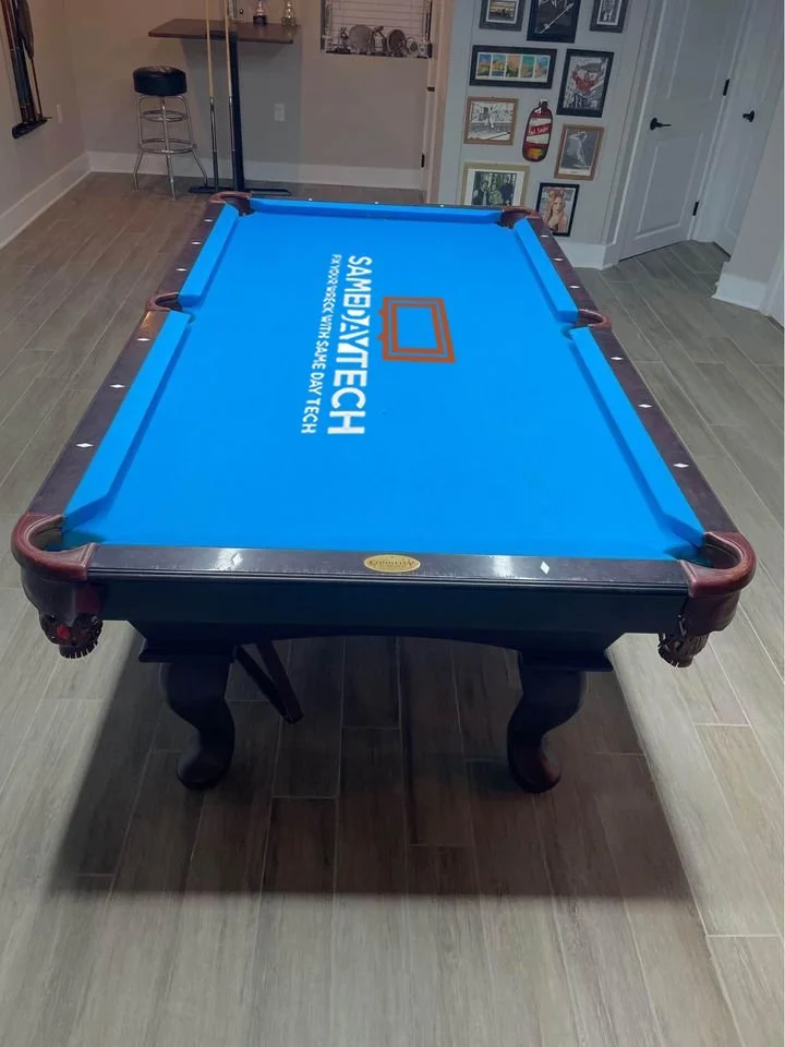 We also specialize in custom pool table refelting and pool table recovering, offering tailored services to meet your specific needs. Whether you’re looking to upgrade your pool table cloth, match your room’s decor, or restore your table to top condition, our expert team has the experience to deliver.